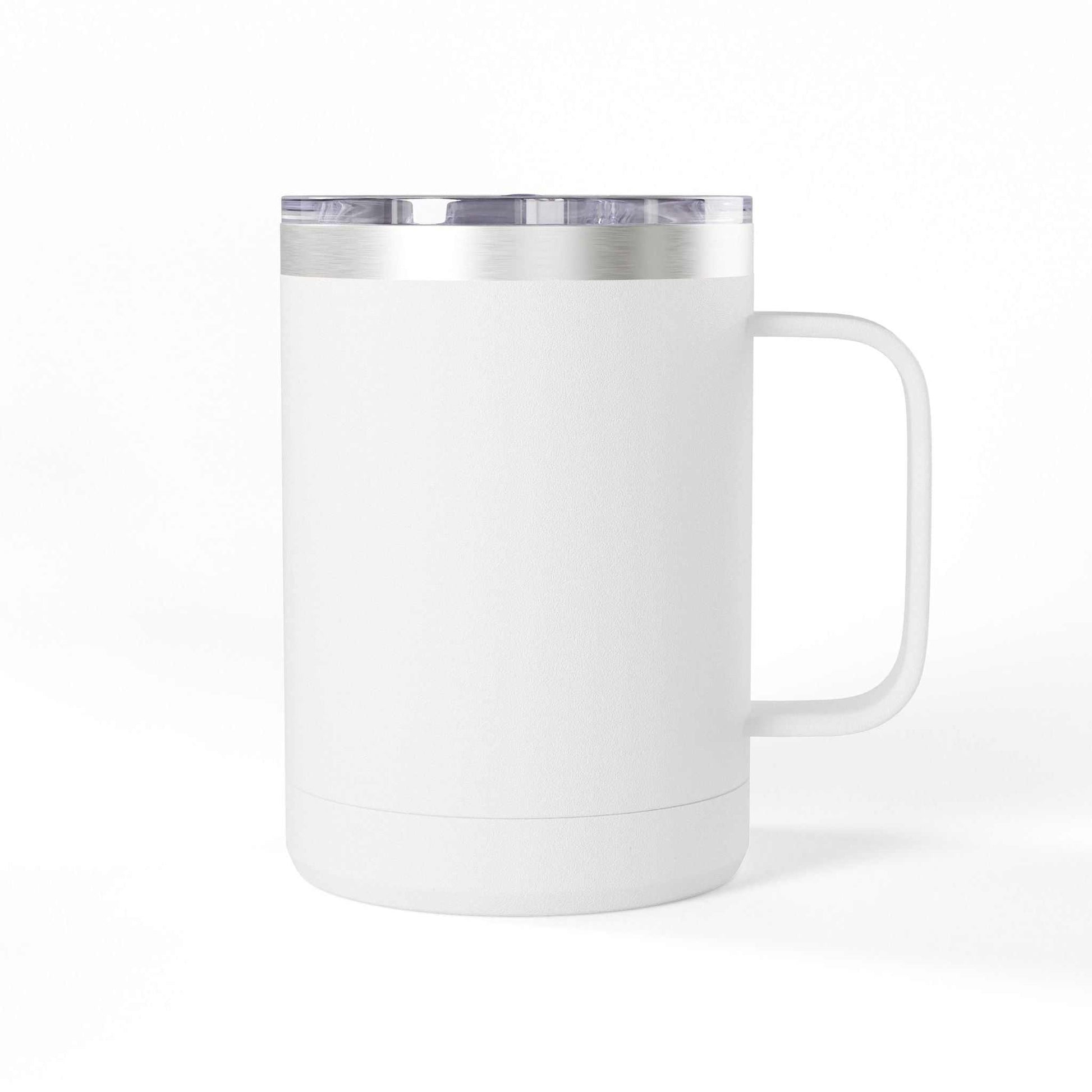 Meet the perfect gift for any coffee enthusiast – the coffee mug tumbler. Made with high-grade stainless steel, this highly durable tumbler is shaped like a mug with a convenient C handle. What's more, its double wall insulation can carry 15oz of your favorite coffee in the perfect temperature whether it's toasty or a refreshing cold brew. All tumblers come with a stylish powder coating and a lid included.
